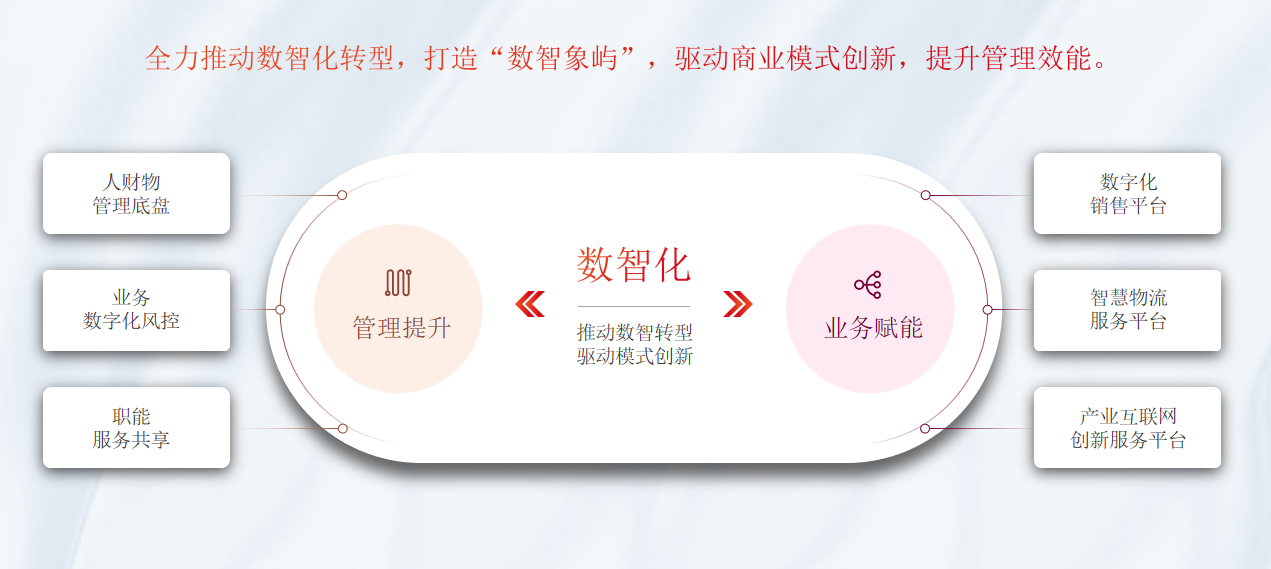 “烏卡時(shí)代”指正處于一個(gè)易變性、不確定性、復(fù)雜性、模糊性的世界里。從“區(qū)域性供應(yīng)鏈服務(wù)商”一步步成長為“中國領(lǐng)先的供應(yīng)鏈投資運(yùn)營服務(wù)商”的象嶼股份,堅(jiān)持以“平臺化、國際化、數(shù)智化”作為主要手段,在烏卡時(shí)代積極思變、應(yīng)變,提升供應(yīng)鏈韌性、柔性,實(shí)現(xiàn)保鏈、穩(wěn)鏈。