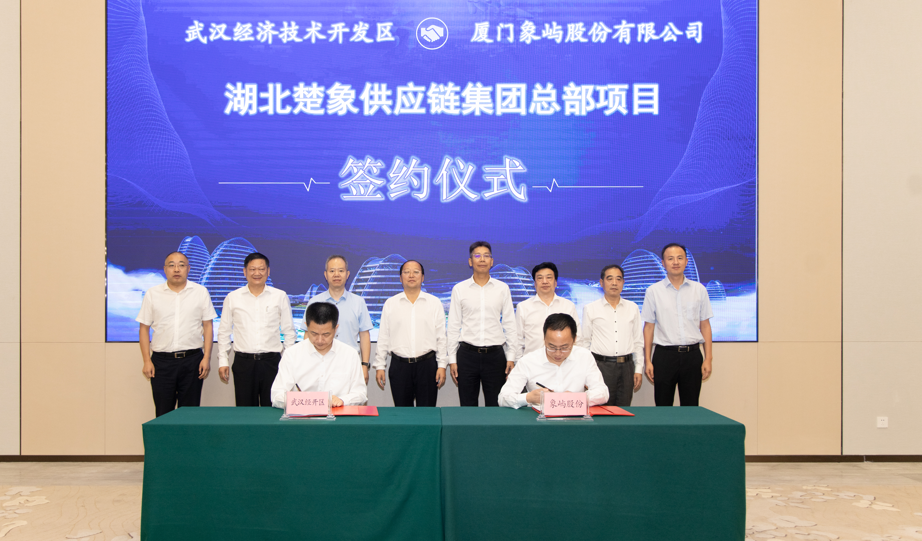 9月28日下午,廈門象嶼股份有限公司與武漢經(jīng)濟(jì)技術(shù)開發(fā)區(qū)簽署項(xiàng)目合作協(xié)議,湖北楚象供應(yīng)鏈集團(tuán)總部項(xiàng)目正式落戶武漢經(jīng)開區(qū)。在象嶼股份黨委書記、總經(jīng)理齊衛(wèi)東,市委常委、武漢經(jīng)開區(qū)工委書記劉子清,湖北交通投資集團(tuán)有限公司黨委書記、董事長(zhǎng)龍傳華,黨委副書記、總經(jīng)理盧軍等共同見證下,象嶼股份黨委委員、副總經(jīng)理范承揚(yáng)與武漢經(jīng)開區(qū)工委副書記、管委會(huì)主任唐超分別代表雙方簽約。